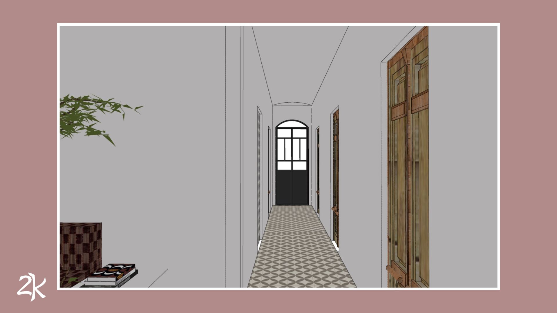 Entrance at street level, through the long high corridor you can walk directly to the patio. The whole house is characterized by a stunning height of over 3 meters.